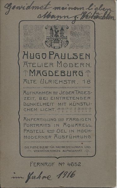 | aktuell | 08:37, 2. Mai 2013 | 1.524 × 2.454 (516 KB) | KlausO (Diskussion • Beiträge) | {{Information |Beschreibung = Paulsen |Quelle = |Urheber = Paulsen |Datum = 1916 |Scans = 2013 |Genehmigung = |Andere_Versionen = |Anmerkungen = }} [[Category:Images {{subst:REVISIONUSER}}]] |