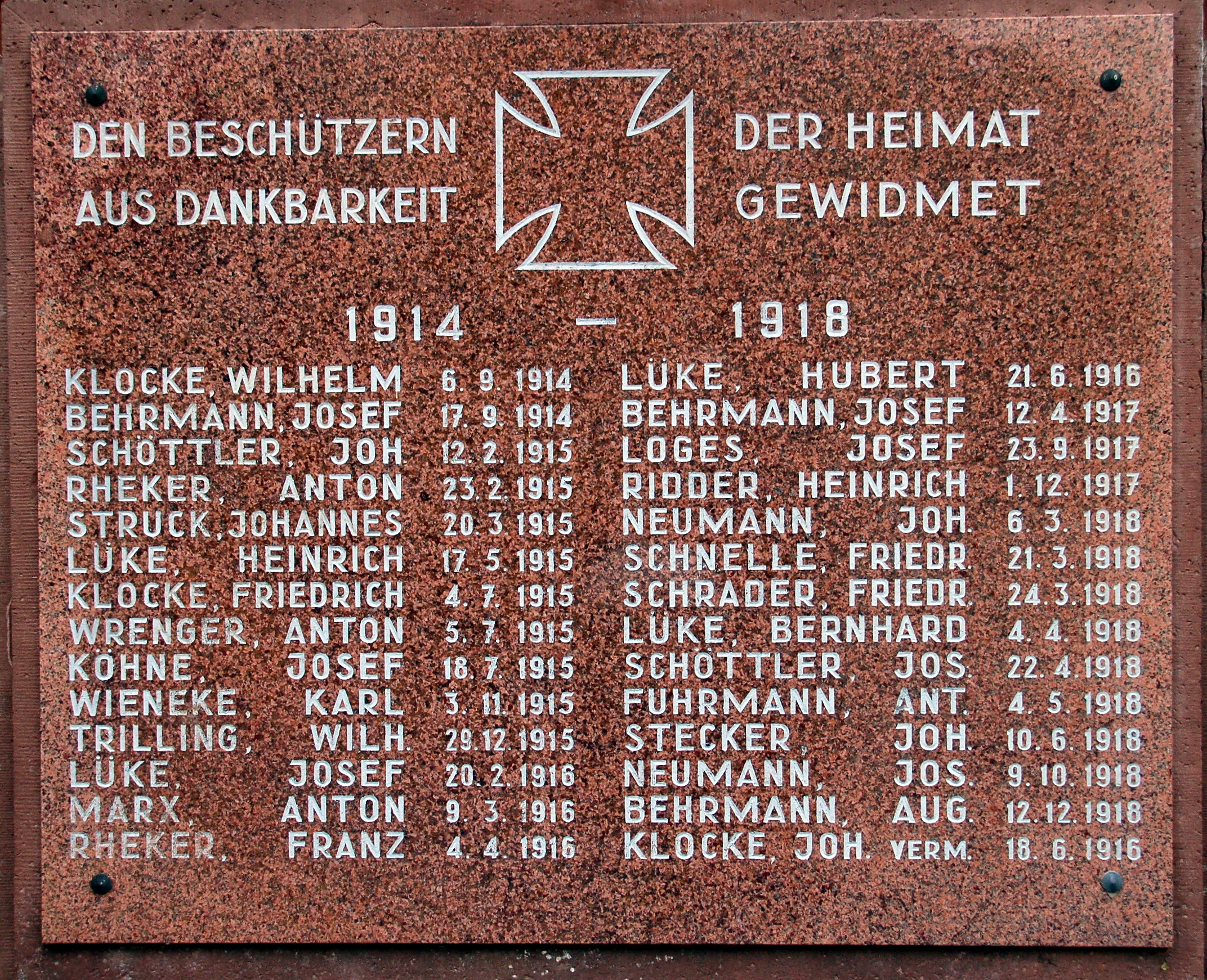 Die Tafel mit den Namen der Opfer des I. Weltkrieges am Denkmal in Kollerbeck
