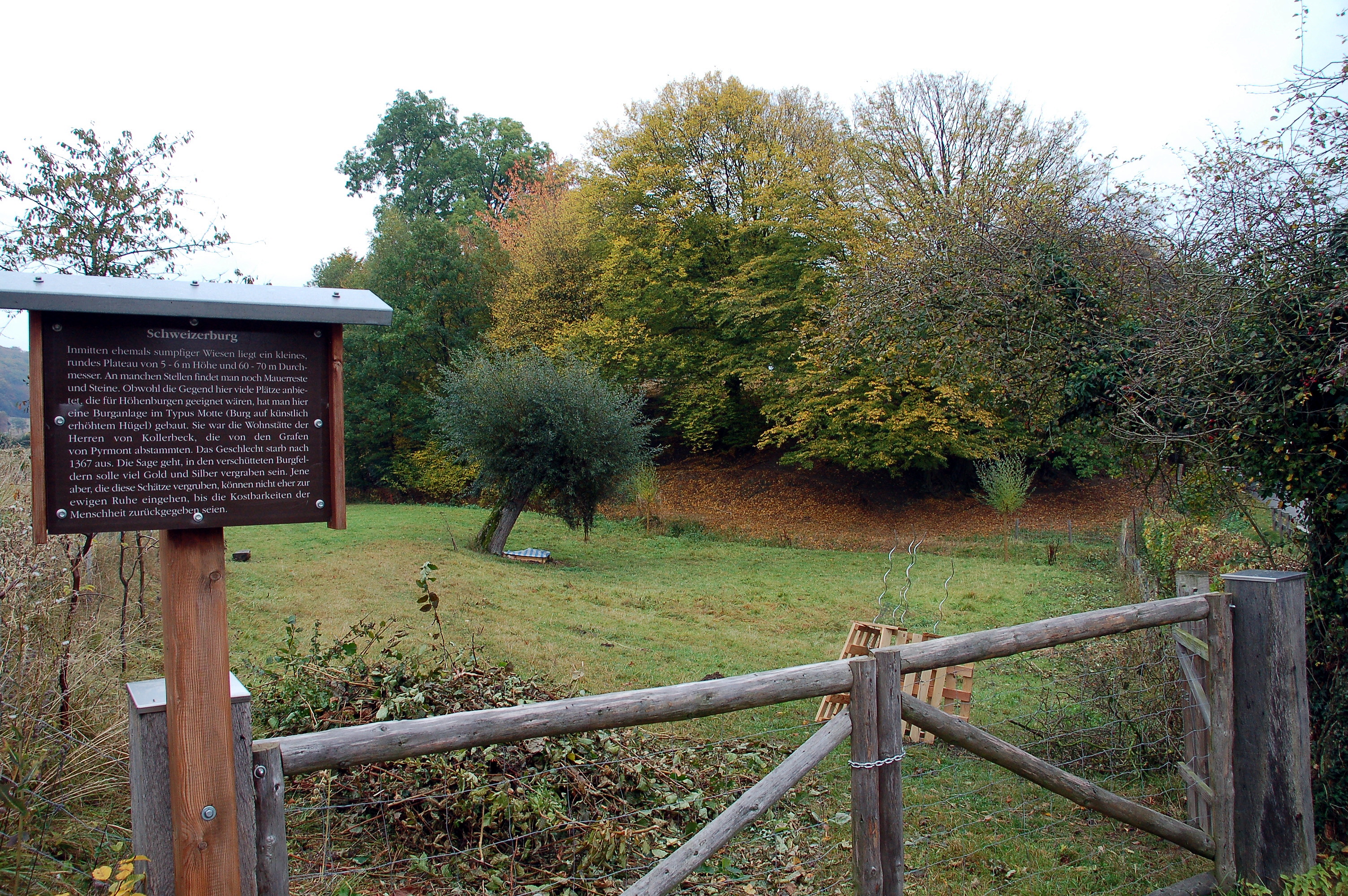 Hinweisschild an der ehemaligen Schweizerburg in Kollerbeck | ||||