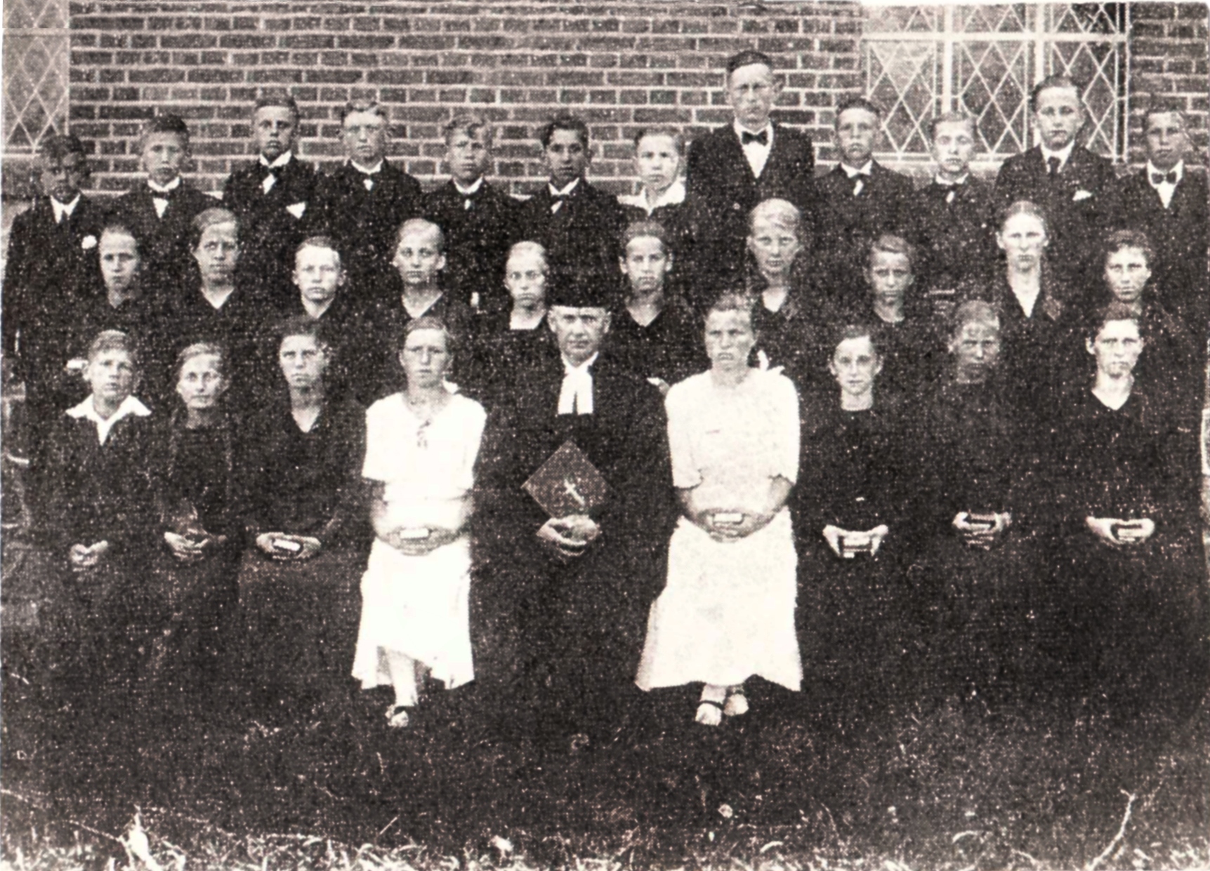 Datei:Konfirmation Franz Hoppe Ramutten 1936 m. Pfarrer Weyrauch r.jpeg
