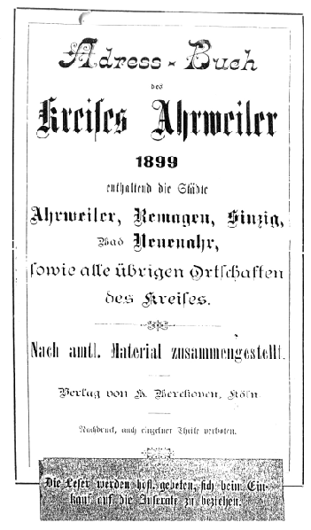 Titelblatt des Kreisadressbuches Ahrweiler 1899