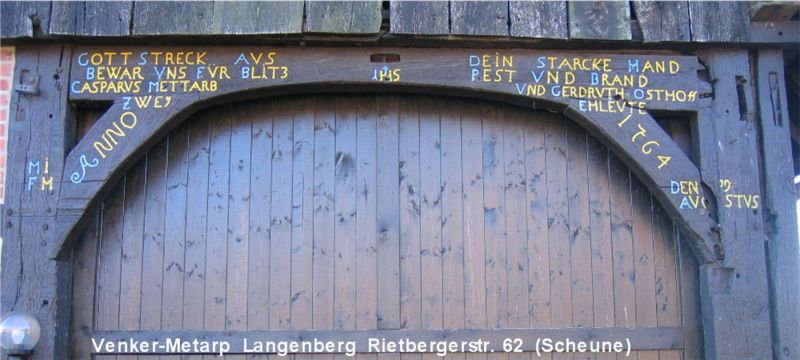 - Beschreibung: Hausinschrift Venker-Metarp in Langenberg, Kreis Gütersloh