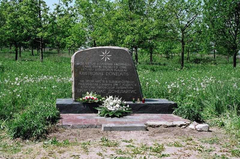 Ehrenmal für Christian Donelaitis in Lasdinehlen im Norden von Sadweitschen, Kreis Gumbinnen, Ostpreußen |