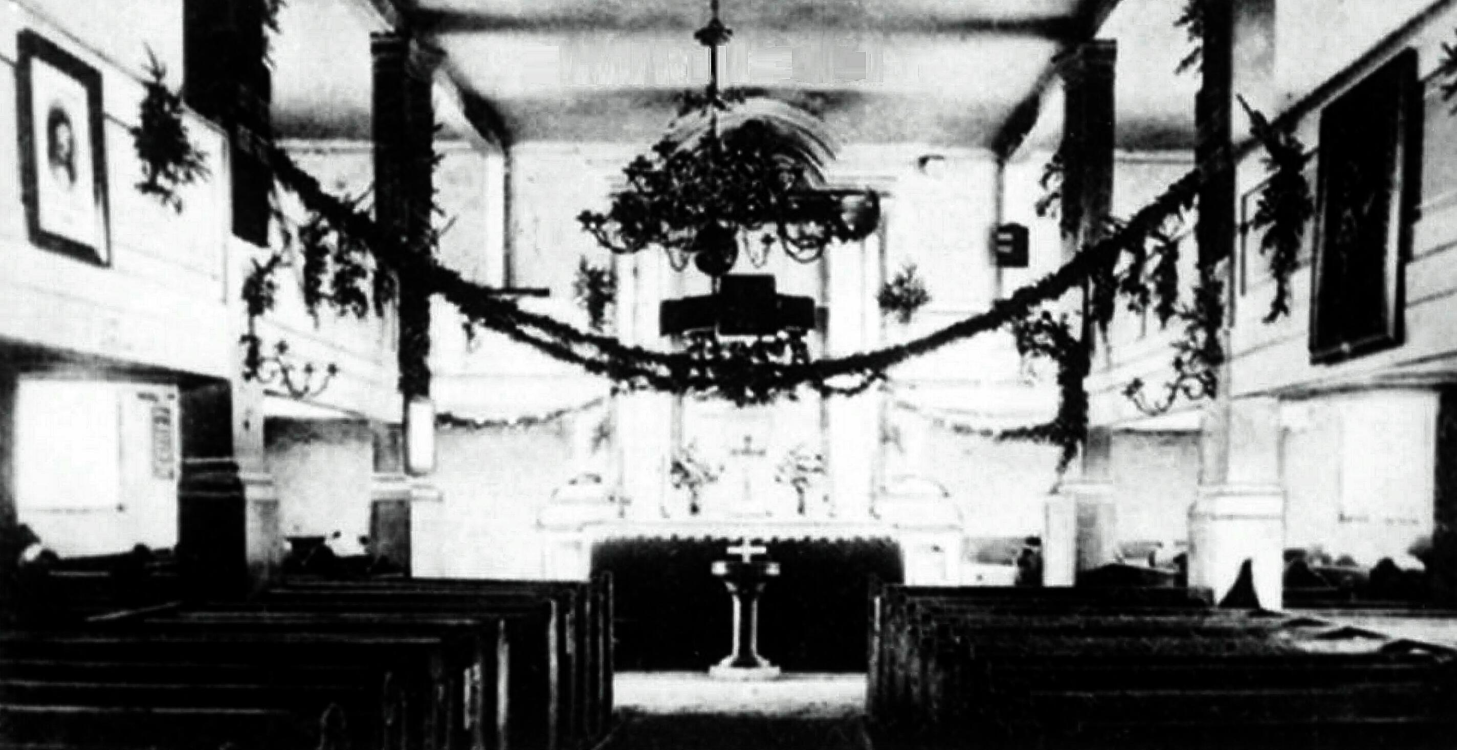 Innenraum mit Kanzelaltar der ev. Kirche Lengwethen |