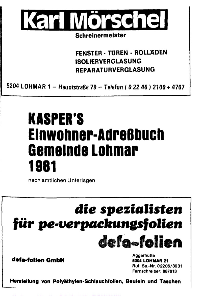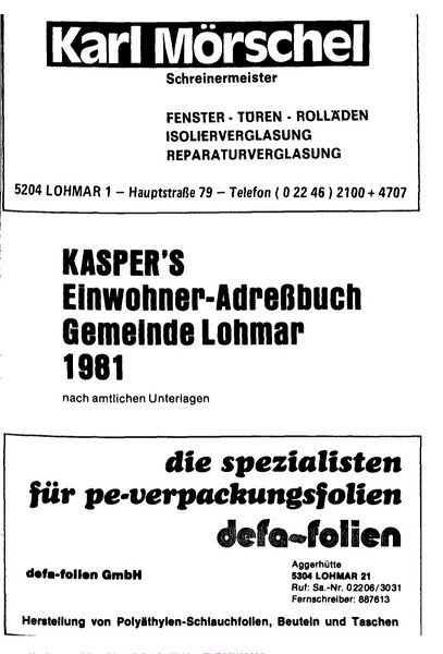 Kasper's Einwohner-Adreßbuch Gemeinde Lohmar 1981, Titelblatt |
