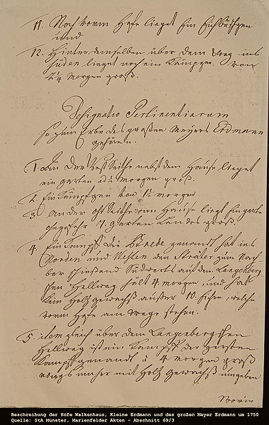 - Beschreibung: Hofbeschreibung von Walkenhaus, kleine Erdmann und Meyer Erdmann um 1750 (seite4).