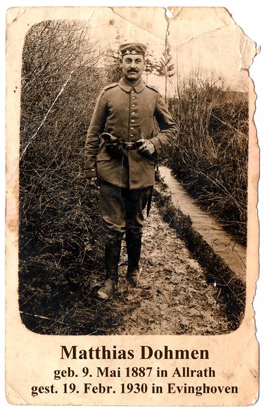Feldpostkarte aus dem I. Weltkrieg von Matthias Dohmen aus Allrath | |||