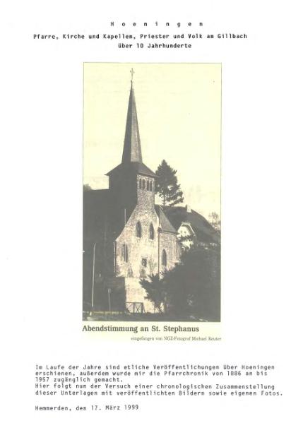 Kurzfinfo zur Pfarrchronik St. Stephanus, Hoeningen | |||||||