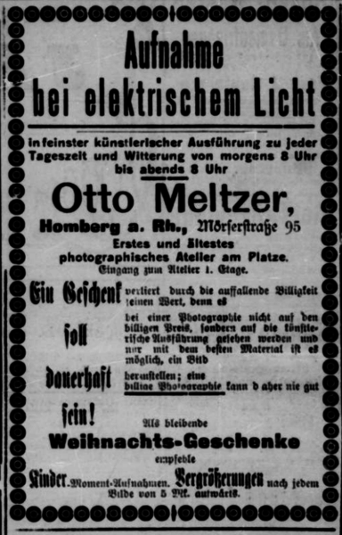 siehe [1] Anzeige vom in der Duisburg-Ruhrorter Zeitung vom 12. Dezember 1906, Duisburg-Ruhrorter Zeitung / Fotostudio, weitere Details siehe unter "Dateiverwendungen" | |