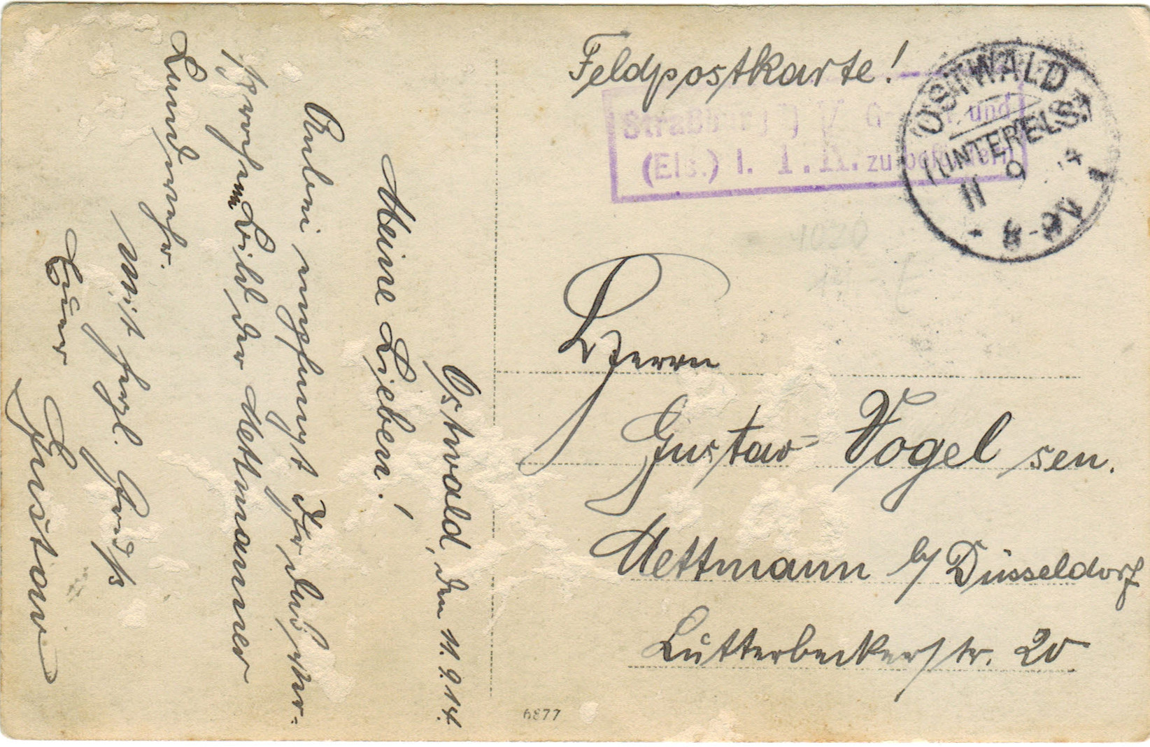 | aktuell | 11:28, 30. Nov. 2014 | 1.644 × 1.068 (512 KB) | Peterga (Diskussion • Beiträge) | *Beschreibung: Feldpostkarte 1914 hinten *Quelle: selbst gescannt *Fotograf oder Zeichner(in): {{Copyright GenWiki/de|Peterga|Peter Gaßner}} Category:Mettmann |