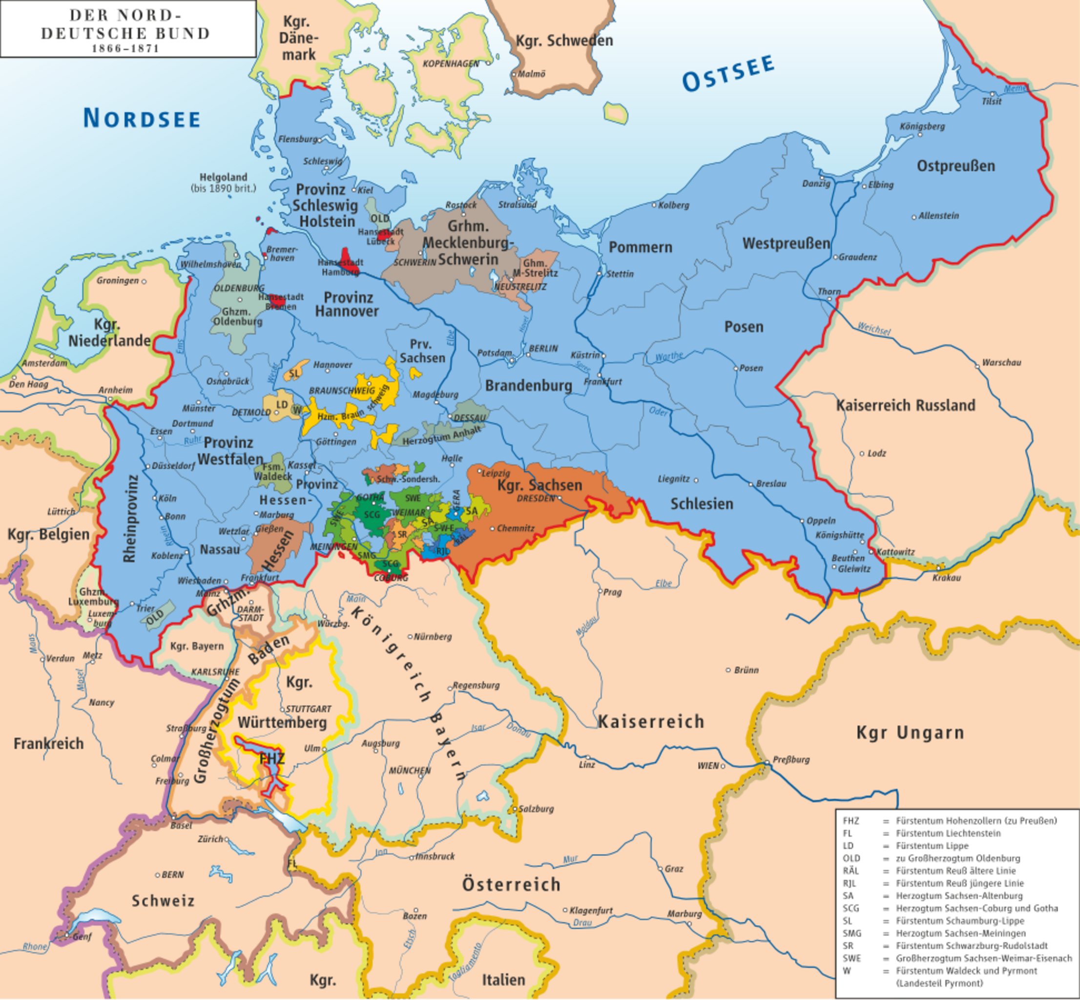 | aktuell | 13:19, 21. Aug. 2016 | 971 × 899 (1,88 MB) | HJS (Diskussion • Beiträge) | {{Information |Beschreibung = Mitgliedsstaaten des Norddeutschen Bundes |Quelle = Wikipedia |Urheber = Von Ziegelbrenner - own drawing/Source of Information: Putzger – Historischer Weltatlas, 89. Auflage, 1965; Westermanns Großer Atlas zur Weltgeschic |
