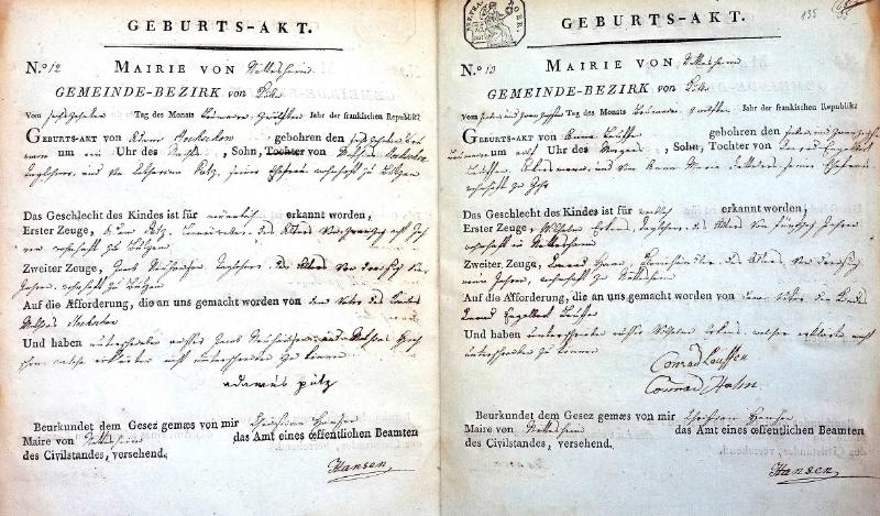 | aktuell | 08:34, 24. Aug. 2011 | 2.197 × 1.538, 40 Seiten (17,98 MB) | KlausErdmann (Diskussion • Beiträge) | {{Information |Beschreibung = ;Standesamt Nettesheim, Geburts-Register 1804:XII. Jahr der französischen Republik |Quelle = Gemeindearchiv Rommerskirchen |Urheber = |Datum = XII. Jahr der französischen Republik |Sc |