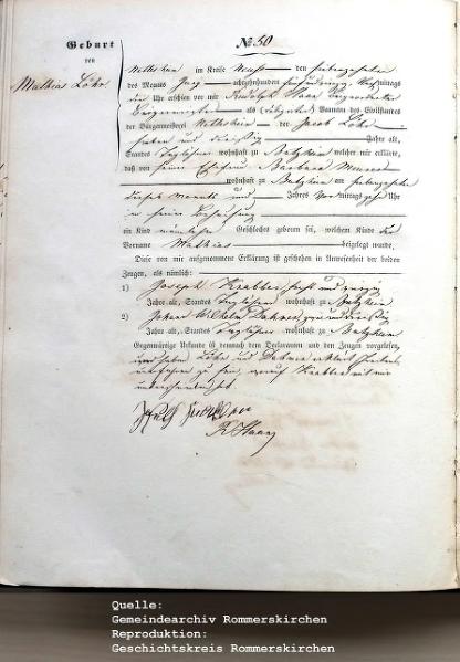 | aktuell | 16:28, 10. Jul. 2011 | 3.616 × 2.254, 6 Seiten (2,72 MB) | KlausErdmann (Diskussion • Beiträge) | {{Information |Beschreibung = ;Bürgermeisterei Nettesheim, Geburts-Urkunde No. 1845/50:von Mathias Löhr aus Butzheim |Quelle = Gemeindearchiv Rommerskirchen |Urheber = |Datum = 1845 |Scans = [[User:KlausErdmann|Kl |