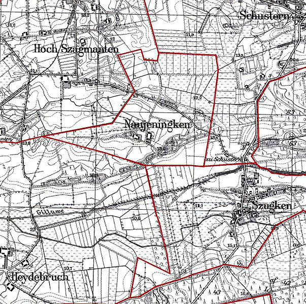 Ausschnitt aus dem Messtischblatt 0899 Szugken (1:25 000) | ||||