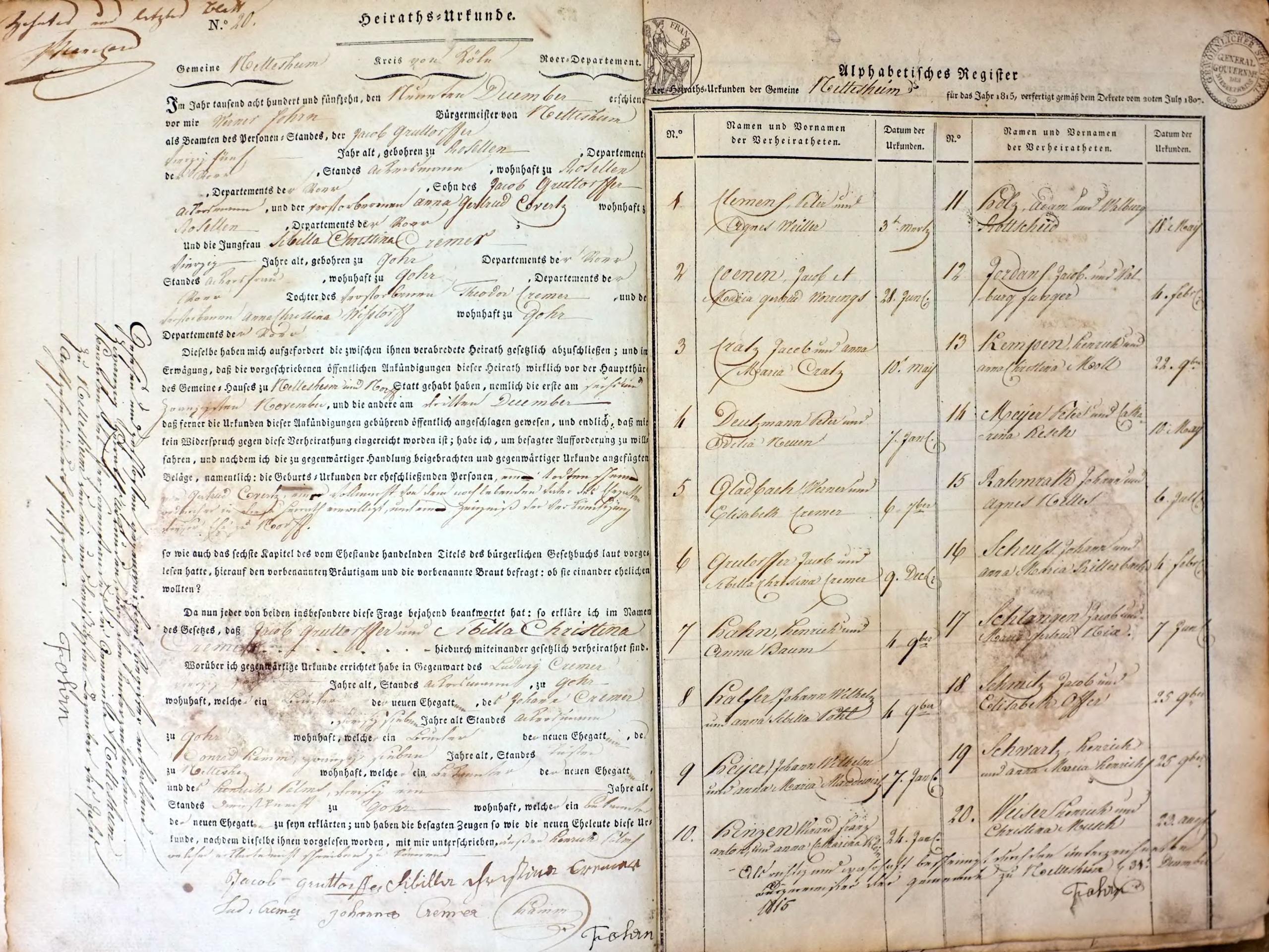 | aktuell | 16:04, 17. Okt. 2012 | 3.444 × 2.517, 11 Seiten (7,43 MB) | KlausErdmann (Diskussion • Beiträge) | {{Information |Beschreibung = ;Standesamt Nettesheim, Heiratsregister von 1815 |Quelle = Gemeindearchiv Rommerskirchen |Urheber = |Datum = 1815 |Scans = Klaus Erdmann ''(Repr |