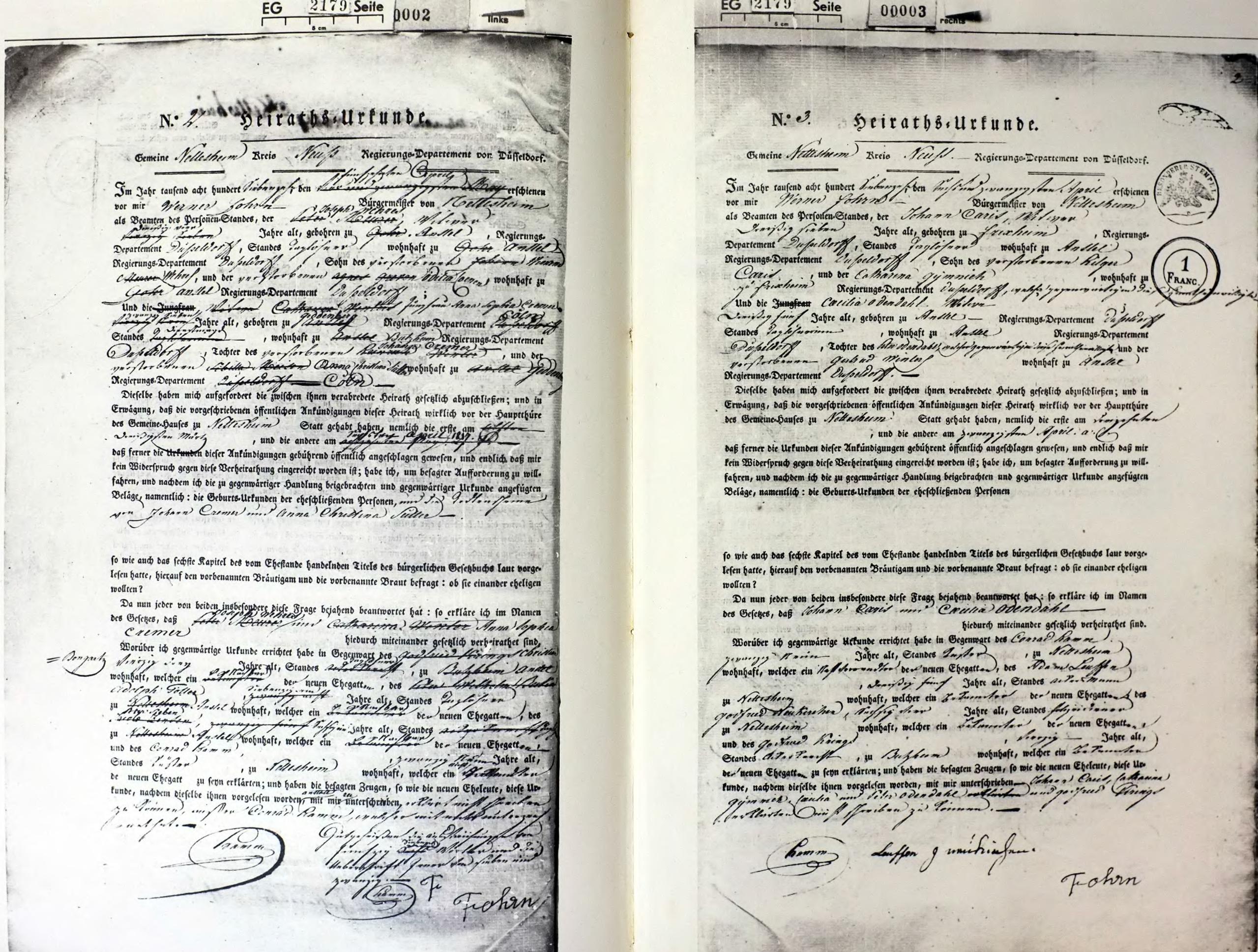 | aktuell | 12:56, 17. Okt. 2012 | 1.567 × 2.157, 9 Seiten (4,66 MB) | KlausErdmann (Diskussion • Beiträge) | {{Information |Beschreibung = ;Standesamt Nettesheim:Heiratsregister von 1817 |Quelle = Gemeindearchiv Rommerskirchen |Urheber = |Datum = 1817 |Scans = Klaus Erdmann ''(Repro |