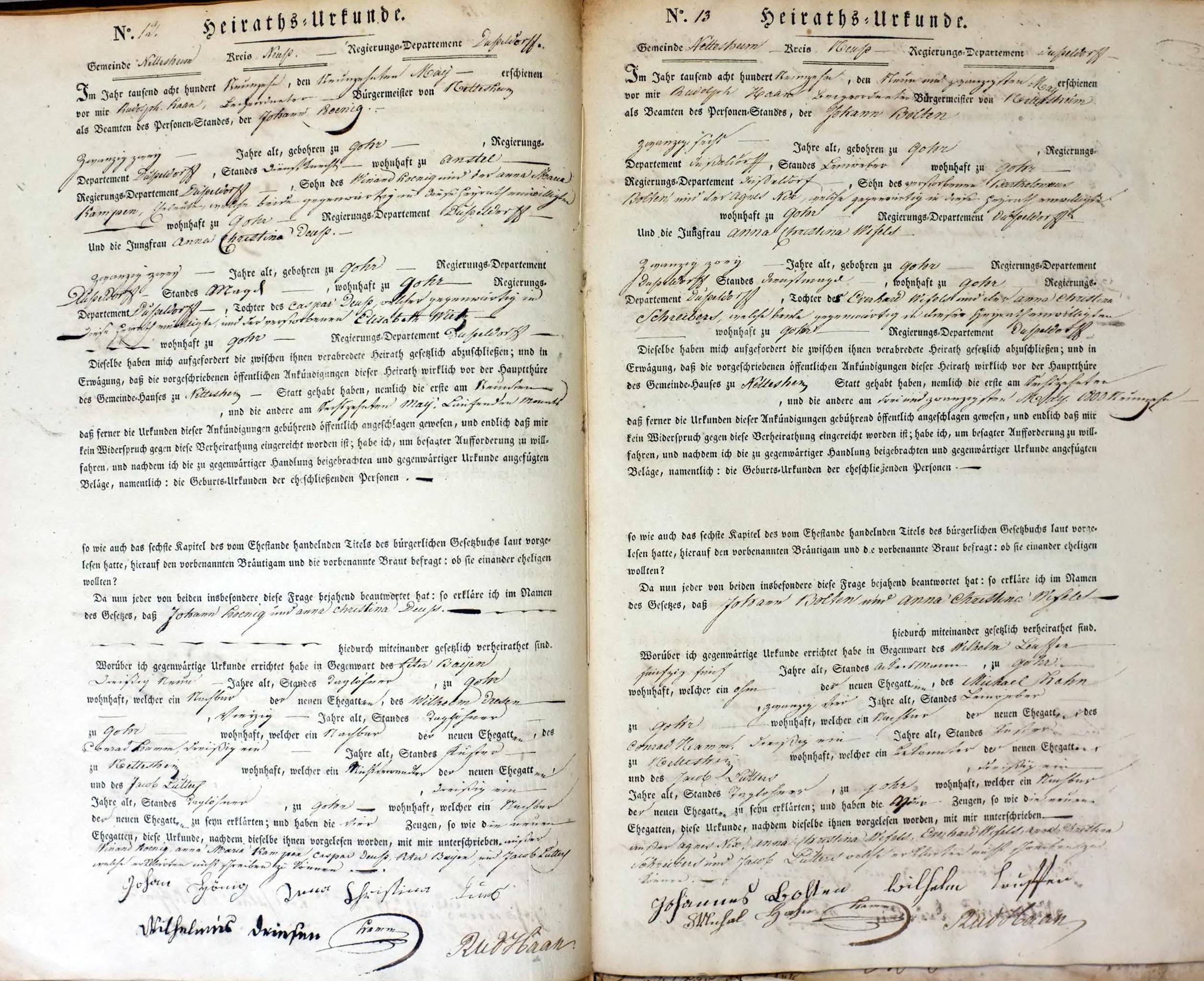 | aktuell | 15:45, 17. Okt. 2012 | 3.318 × 2.626, 12 Seiten (7,84 MB) | KlausErdmann (Diskussion • Beiträge) | {{Information |Beschreibung = ;Standesamt Nettesheim, Heiratsregister von 1819 |Quelle = Gemeindearchiv Rommerskirchen |Urheber = |Datum = 1819 |Scans = Klaus Erdmann ''(Repr |