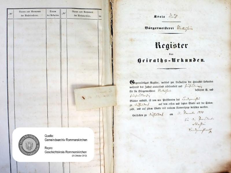 "Standesamtregister aus dem Gemeindearchiv Rommerskirchen"
