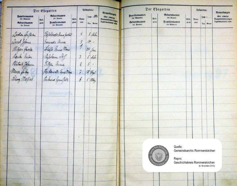"Standesamtregister aus dem Gemeindearchiv Rommerskirchen"
