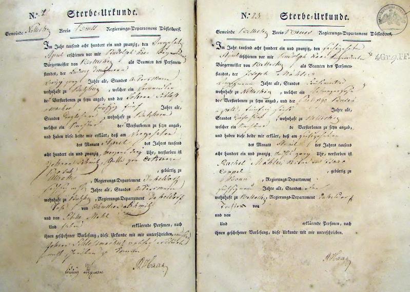 | aktuell | 15:09, 14. Okt. 2011 | 1.024 × 1.507, 35 Seiten (5,58 MB) | KlausErdmann (Diskussion • Beiträge) | {{Information |Beschreibung = ;Standesamt Nettesheim, Sterbeurkunden von 1821 |Quelle = Gemeindearchiv Rommerskirchen |Urheber = |Datum = 1821 |Scans = Klaus Erdmann ''(Repro: 13. Oktober 2011) |
