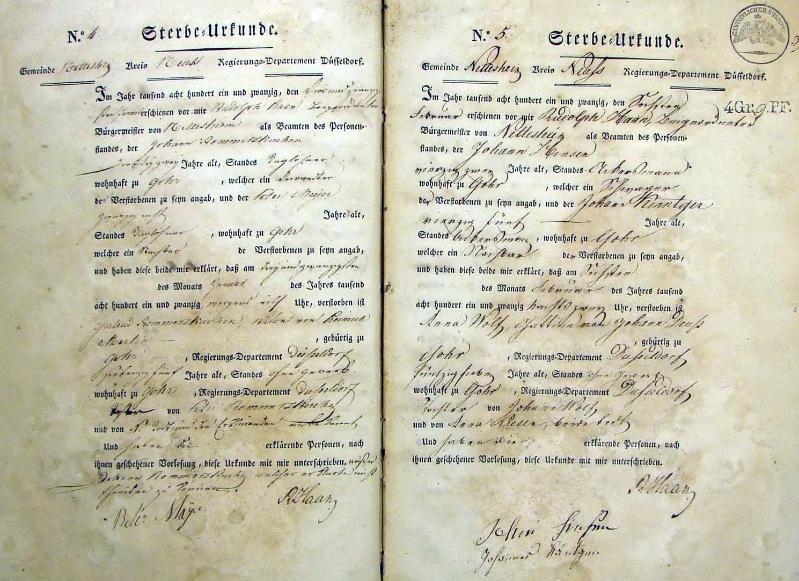 | aktuell | 15:09, 14. Okt. 2011 | 1.024 × 1.507, 35 Seiten (5,58 MB) | KlausErdmann (Diskussion • Beiträge) | {{Information |Beschreibung = ;Standesamt Nettesheim, Sterbeurkunden von 1821 |Quelle = Gemeindearchiv Rommerskirchen |Urheber = |Datum = 1821 |Scans = Klaus Erdmann ''(Repro: 13. Oktober 2011) |