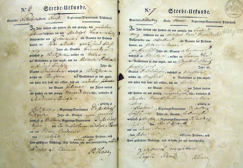 | aktuell | 15:09, 14. Okt. 2011 | 1.024 × 1.507, 35 Seiten (5,58 MB) | KlausErdmann (Diskussion • Beiträge) | {{Information |Beschreibung = ;Standesamt Nettesheim, Sterbeurkunden von 1821 |Quelle = Gemeindearchiv Rommerskirchen |Urheber = |Datum = 1821 |Scans = Klaus Erdmann ''(Repro: 13. Oktober 2011) |