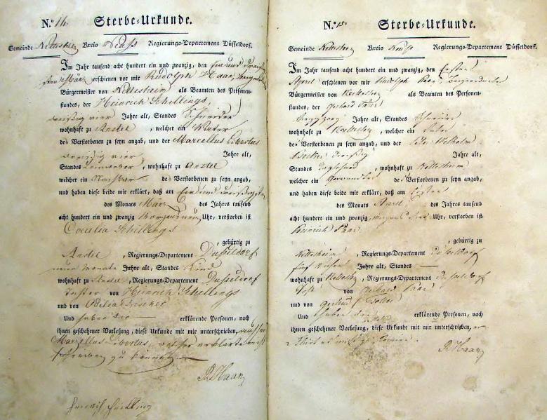 | aktuell | 15:09, 14. Okt. 2011 | 1.024 × 1.507, 35 Seiten (5,58 MB) | KlausErdmann (Diskussion • Beiträge) | {{Information |Beschreibung = ;Standesamt Nettesheim, Sterbeurkunden von 1821 |Quelle = Gemeindearchiv Rommerskirchen |Urheber = |Datum = 1821 |Scans = Klaus Erdmann ''(Repro: 13. Oktober 2011) |