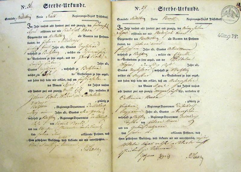 | aktuell | 16:05, 14. Okt. 2011 | 1.015 × 1.492, 48 Seiten (8,36 MB) | KlausErdmann (Diskussion • Beiträge) | {{Information |Beschreibung = ;Standesamt Nettesheim, Sterbeurkunden von 1822 |Quelle = Gemeindearchiv Rommerskirchen |Urheber = |Datum = 1822 |Scans = Klaus Erdmann ''(Repro: 13. Oktober 2011) |