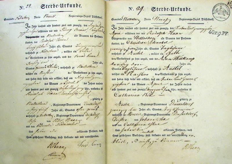 | aktuell | 16:05, 14. Okt. 2011 | 1.015 × 1.492, 48 Seiten (8,36 MB) | KlausErdmann (Diskussion • Beiträge) | {{Information |Beschreibung = ;Standesamt Nettesheim, Sterbeurkunden von 1822 |Quelle = Gemeindearchiv Rommerskirchen |Urheber = |Datum = 1822 |Scans = Klaus Erdmann ''(Repro: 13. Oktober 2011) |