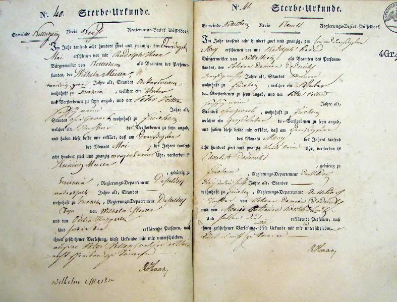 | aktuell | 16:05, 14. Okt. 2011 | 1.015 × 1.492, 48 Seiten (8,36 MB) | KlausErdmann (Diskussion • Beiträge) | {{Information |Beschreibung = ;Standesamt Nettesheim, Sterbeurkunden von 1822 |Quelle = Gemeindearchiv Rommerskirchen |Urheber = |Datum = 1822 |Scans = Klaus Erdmann ''(Repro: 13. Oktober 2011) |