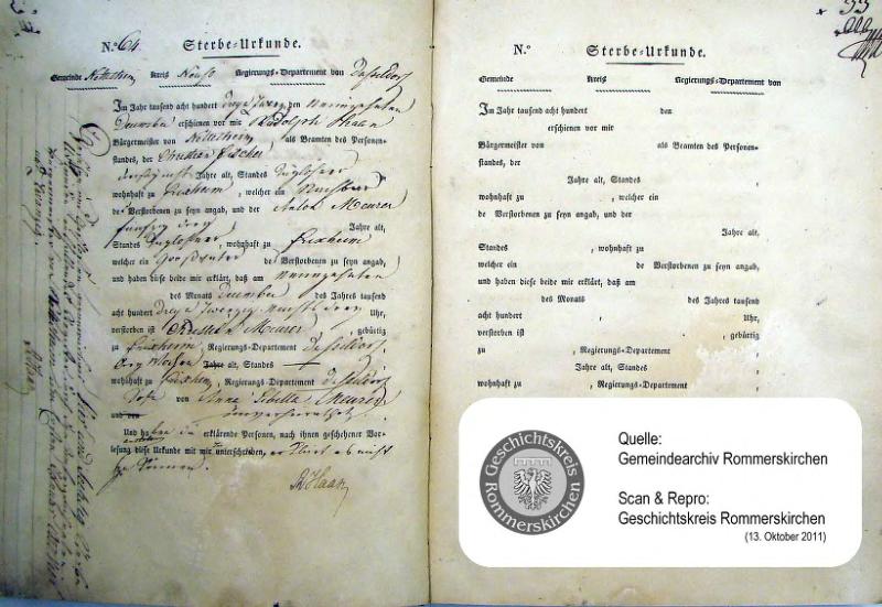 Standesamt Nettesheim, Sterbeurkunden von 1823