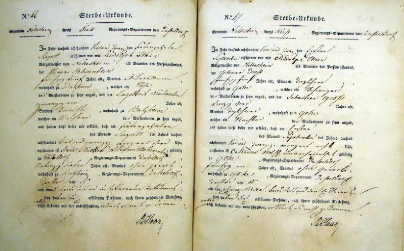 | aktuell | 07:51, 15. Okt. 2011 | 1.021 × 1.417, 41 Seiten (7,48 MB) | KlausErdmann (Diskussion • Beiträge) | {{Information |Beschreibung = ;Standesamt Nettesheim, Sterbeurkunden von 1824 |Quelle = Gemeindearchiv Rommerskirchen |Urheber = |Datum = 1824 |Scans = Klaus Erdmann ''(Repro: 13. Oktober 2011) |