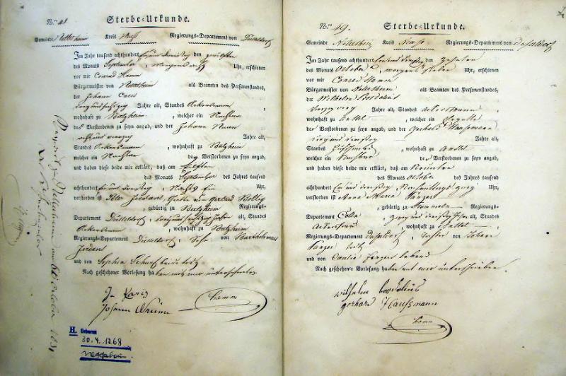 | aktuell | 18:27, 15. Okt. 2011 | 1.146 × 1.353, 38 Seiten (7,41 MB) | KlausErdmann (Diskussion • Beiträge) | {{Information |Beschreibung = ;Standesamt Nettesheim, Sterbeurkunden von 1831 |Quelle = Gemeindearchiv Rommerskirchen |Urheber = |Datum = 1831 |Scans = Klaus Erdmann ''(Repro: 13. Oktober 2011) |