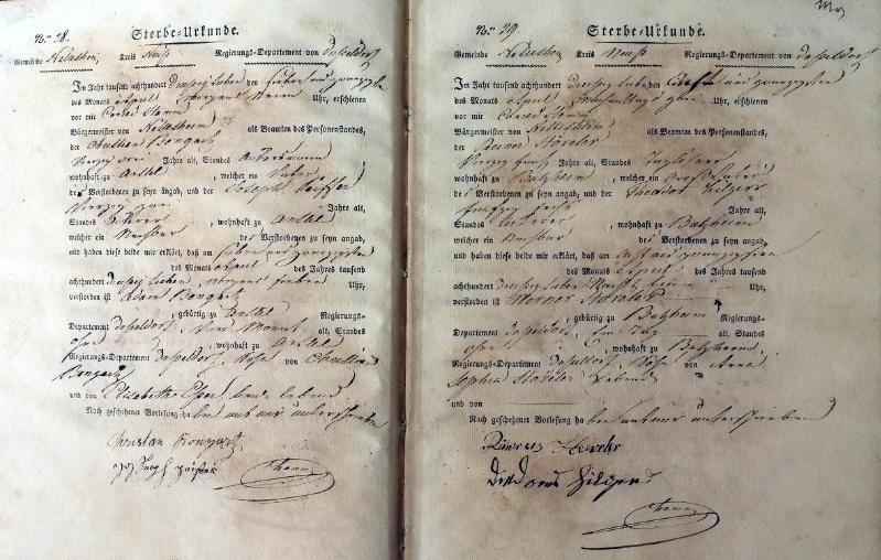 | aktuell | 14:28, 21. Okt. 2011 | 1.375 × 1.587, 42 Seiten (14,17 MB) | KlausErdmann (Diskussion • Beiträge) | {{Information |Beschreibung = ;Bürgermeisterei Nettesheim, Register der Sterbe-Urkunden von 1837 |Quelle = Gemeindearchiv Rommerskirchen |Urheber = |Datum = 1837 |Scans = Klaus Erdmann ''(Repr |