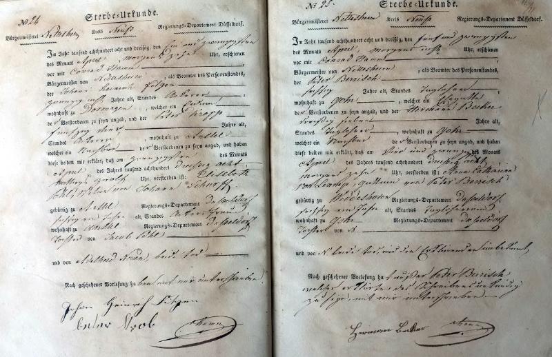| aktuell | 14:50, 21. Okt. 2011 | 1.375 × 1.587, 35 Seiten (11,05 MB) | KlausErdmann (Diskussion • Beiträge) | {{Information |Beschreibung = ;Bürgermeisterei Nettesheim, Register der Sterbe-Urkunden von 1838 |Quelle = Gemeindearchiv Rommerskirchen |Urheber = |Datum = 1838 |Scans = Klaus Erdmann ''(Repr |