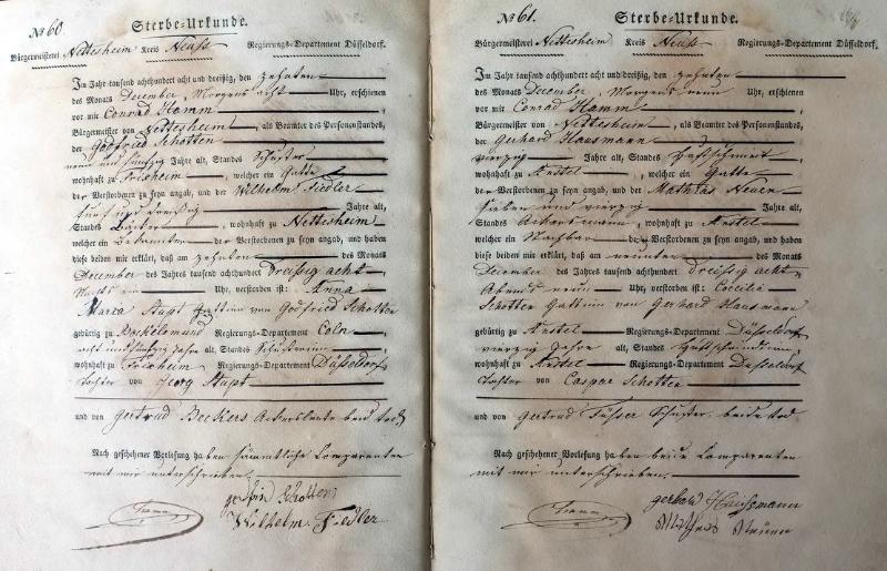| aktuell | 14:50, 21. Okt. 2011 | 1.375 × 1.587, 35 Seiten (11,05 MB) | KlausErdmann (Diskussion • Beiträge) | {{Information |Beschreibung = ;Bürgermeisterei Nettesheim, Register der Sterbe-Urkunden von 1838 |Quelle = Gemeindearchiv Rommerskirchen |Urheber = |Datum = 1838 |Scans = Klaus Erdmann ''(Repr |
