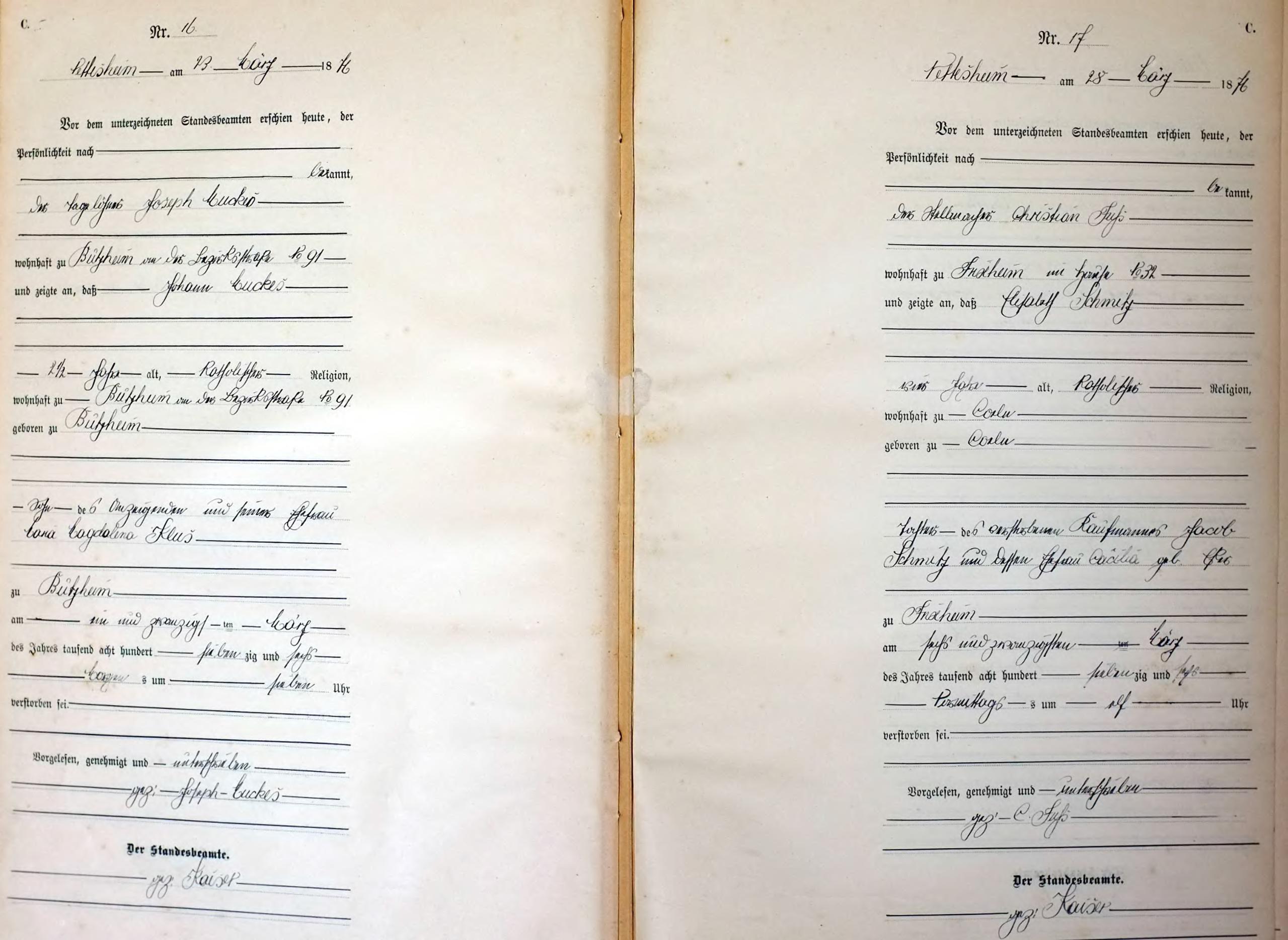 "Standesamtregister aus dem Gemeindearchiv Rommerskirchen"