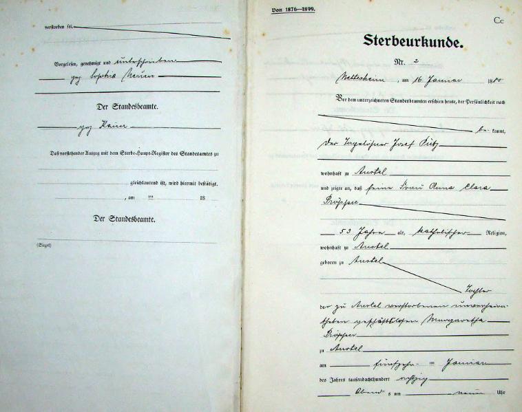| aktuell | 19:47, 8. Mär. 2012 | 1.225 × 1.797, 49 Seiten (8,18 MB) | KlausErdmann (Diskussion • Beiträge) | {{Information |Beschreibung = ;Bürgermeisterei Nettesheim, Sterbe-Register von 1880 |Quelle = Gemeindearchiv Rommerskirchen |Urheber = |Datum = 1880 |Scans = Klaus Erdmann ''(Reproduktion: (8. |
