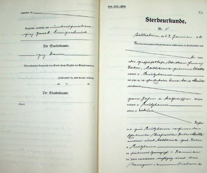 Bürgermeisterei Nettesheim, Sterbe-Register von 1883
