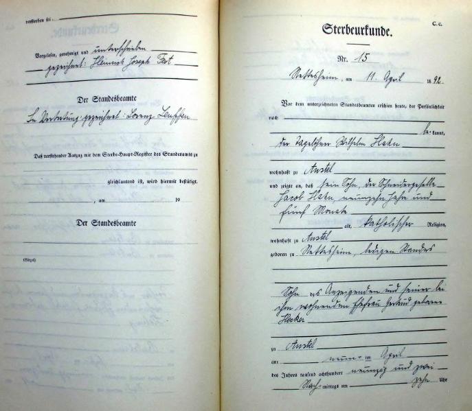 | aktuell | 11:49, 18. Mär. 2012 | 1.158 × 1.701, 55 Seiten (9,34 MB) | KlausErdmann (Diskussion • Beiträge) | {{Information |Beschreibung = ;Standesamt Nettesheim, Sterbe-Register von 1892 |Quelle = Gemeindearchiv Rommerskirchen |Urheber = |Datum = 1892 |Scans = Klaus Erdmann ''(Repro: 16.März 2012)'' |