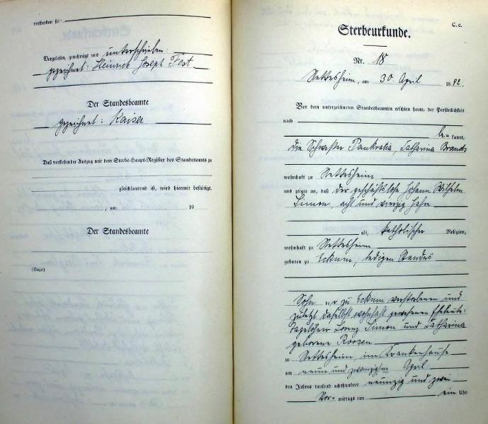 | aktuell | 11:49, 18. Mär. 2012 | 1.158 × 1.701, 55 Seiten (9,34 MB) | KlausErdmann (Diskussion • Beiträge) | {{Information |Beschreibung = ;Standesamt Nettesheim, Sterbe-Register von 1892 |Quelle = Gemeindearchiv Rommerskirchen |Urheber = |Datum = 1892 |Scans = Klaus Erdmann ''(Repro: 16.März 2012)'' |