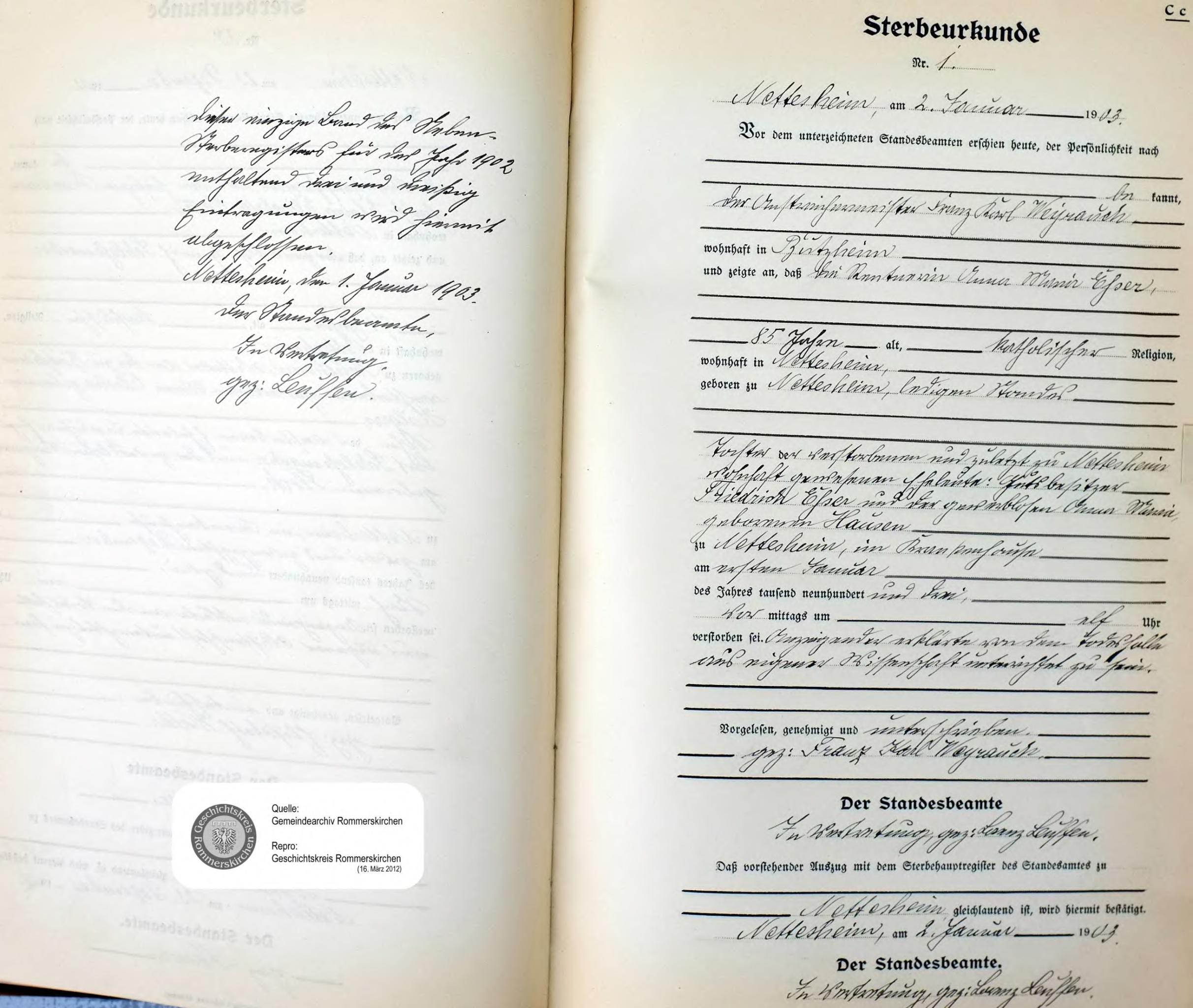 | aktuell | 08:55, 19. Mär. 2012 | 1.786 × 2.310, 33 Seiten (7,49 MB) | KlausErdmann (Diskussion • Beiträge) | {{Information |Beschreibung = ;Standesamt Nettesheim, Sterbe-Register von 1903 |Quelle = Gemeindearchiv Rommerskirchen |Urheber = |Datum = 1903 |Scans = Klaus Erdmann ''(Repro: 16.März 2012)'' |