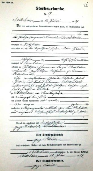 | aktuell | 17:24, 18. Apr. 2012 | 1.362 × 2.490 (239 KB) | KlausErdmann (Diskussion • Beiträge) | {{Information |Beschreibung = Standesamt Nettesheim, ;Sterbeurkunde Nr. 17 von 1909 |Quelle = Gemeindearchiv Rommerskirchen |Urheber = |Datum = 1909 |Scans = Klaus Erdmann ''(Repro: 12. April 2 |