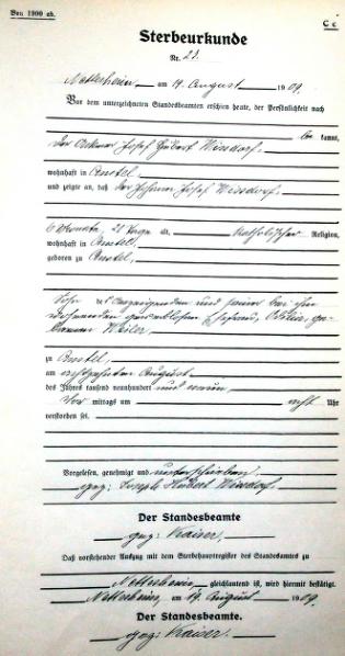 | aktuell | 17:17, 18. Apr. 2012 | 1.324 × 2.507 (216 KB) | KlausErdmann (Diskussion • Beiträge) | {{Information |Beschreibung = Standesamt Nettesheim, ;Sterbeurkunde Nr. 23 von 1909 |Quelle = Gemeindearchiv Rommerskirchen |Urheber = |Datum = 1909 |Scans = Klaus Erdmann ''(Repro: 12. April 2 |