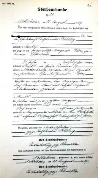 Sterbeurkunde Nr. 26 von 1909