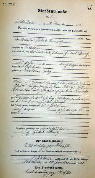 | aktuell | 10:43, 25. Jan. 2013 | 1.881 × 2.511, 44 Seiten (4,77 MB) | KlausErdmann (Diskussion • Beiträge) | {{Information |Beschreibung = ;Standesamt Nettesheim, Sterberegister von 1912 |Quelle = Archiv im Rhein-Kreis Neuss |Urheber = |Datum = 1912 |Scans = Klaus Erdmann ''(Repro: 24. Januar 2 |