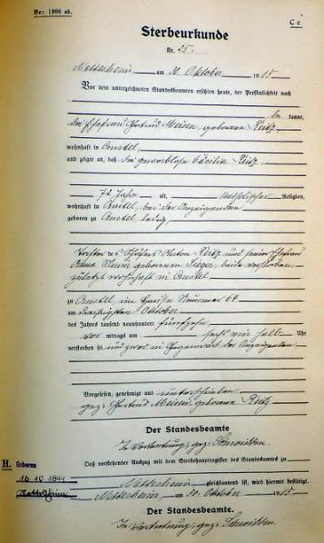 | aktuell | 09:30, 26. Jan. 2013 | 1.881 × 2.511, 35 Seiten (3,77 MB) | KlausErdmann (Diskussion • Beiträge) | {{Information |Beschreibung = ;Standesamt Nettesheim, Sterberegister von 1915 |Quelle = Archiv im Rhein-Kreis Neuss |Urheber = |Datum = 1915 |Scans = Klaus Erdmann ''(Repro: 24. Januar 2 |