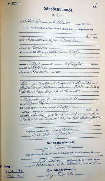 | aktuell | 09:30, 26. Jan. 2013 | 1.881 × 2.511, 35 Seiten (3,77 MB) | KlausErdmann (Diskussion • Beiträge) | {{Information |Beschreibung = ;Standesamt Nettesheim, Sterberegister von 1915 |Quelle = Archiv im Rhein-Kreis Neuss |Urheber = |Datum = 1915 |Scans = Klaus Erdmann ''(Repro: 24. Januar 2 |