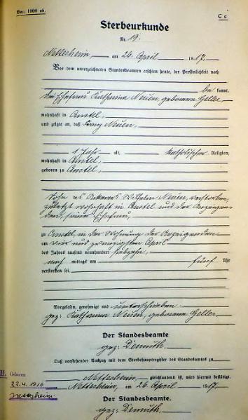 | aktuell | 09:33, 26. Jan. 2013 | 1.881 × 2.511, 62 Seiten (7,07 MB) | KlausErdmann (Diskussion • Beiträge) | {{Information |Beschreibung = ;Standesamt Nettesheim, Sterberegister von 1917 |Quelle = Archiv im Rhein-Kreis Neuss |Urheber = |Datum = 1917 |Scans = Klaus Erdmann ''(Repro: 24. Januar 2 |