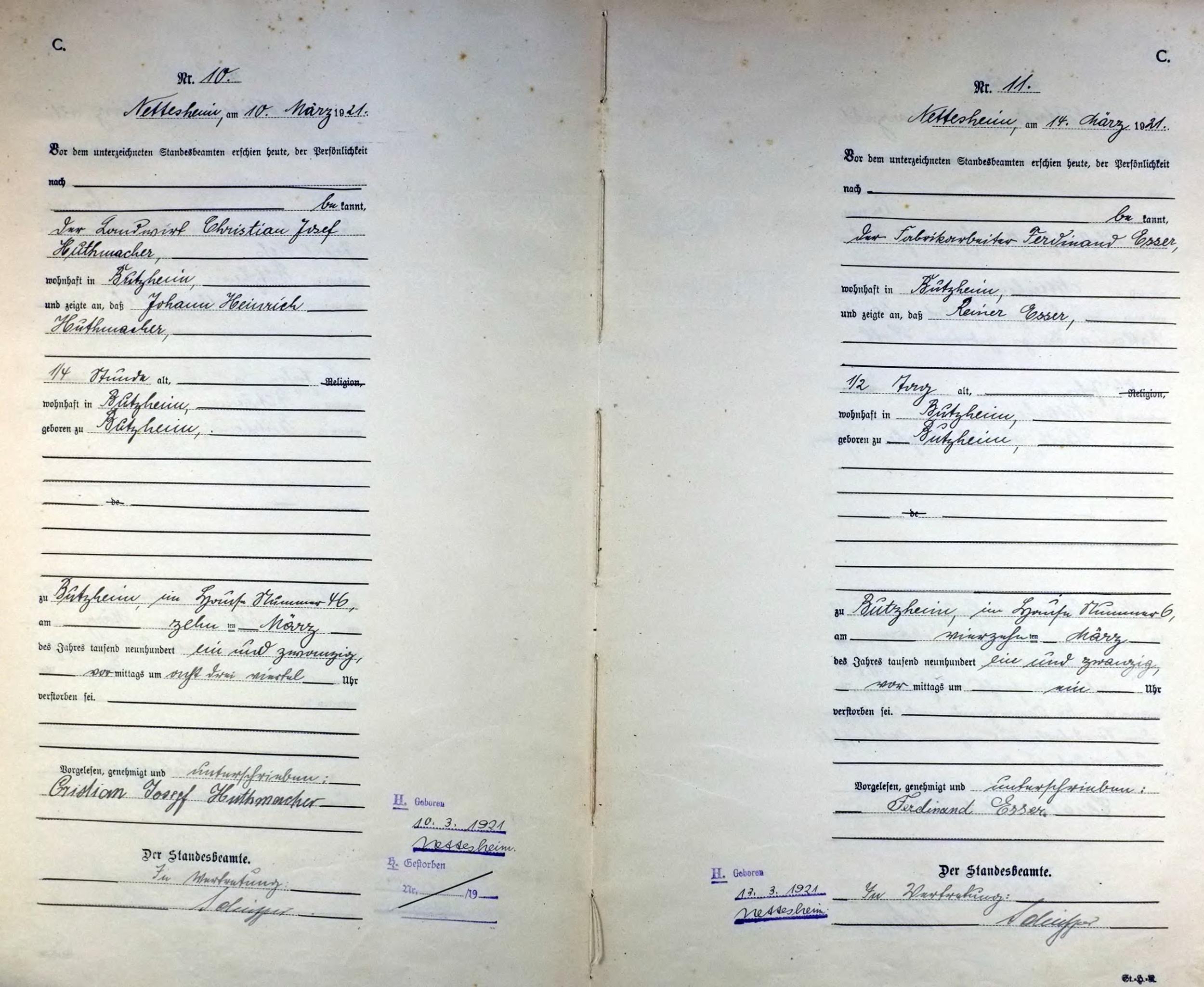 "Standesamtregister aus dem Gemeindearchiv Rommerskirchen"